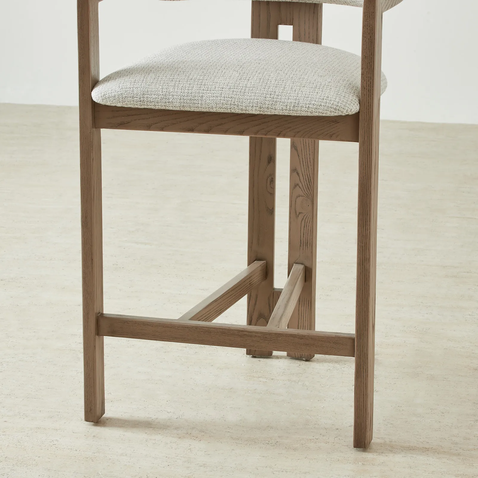 The open ashwood frame in a warm medium brown adds a natural touch. Perfect for contemporary kitchens or minimalist spaces. The integrated footrest adds support and stability, making extended sitting more comfortable.