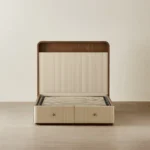 Sir Lionell Amber Brown Bedside Table - Gliding White Sintered Stone Top