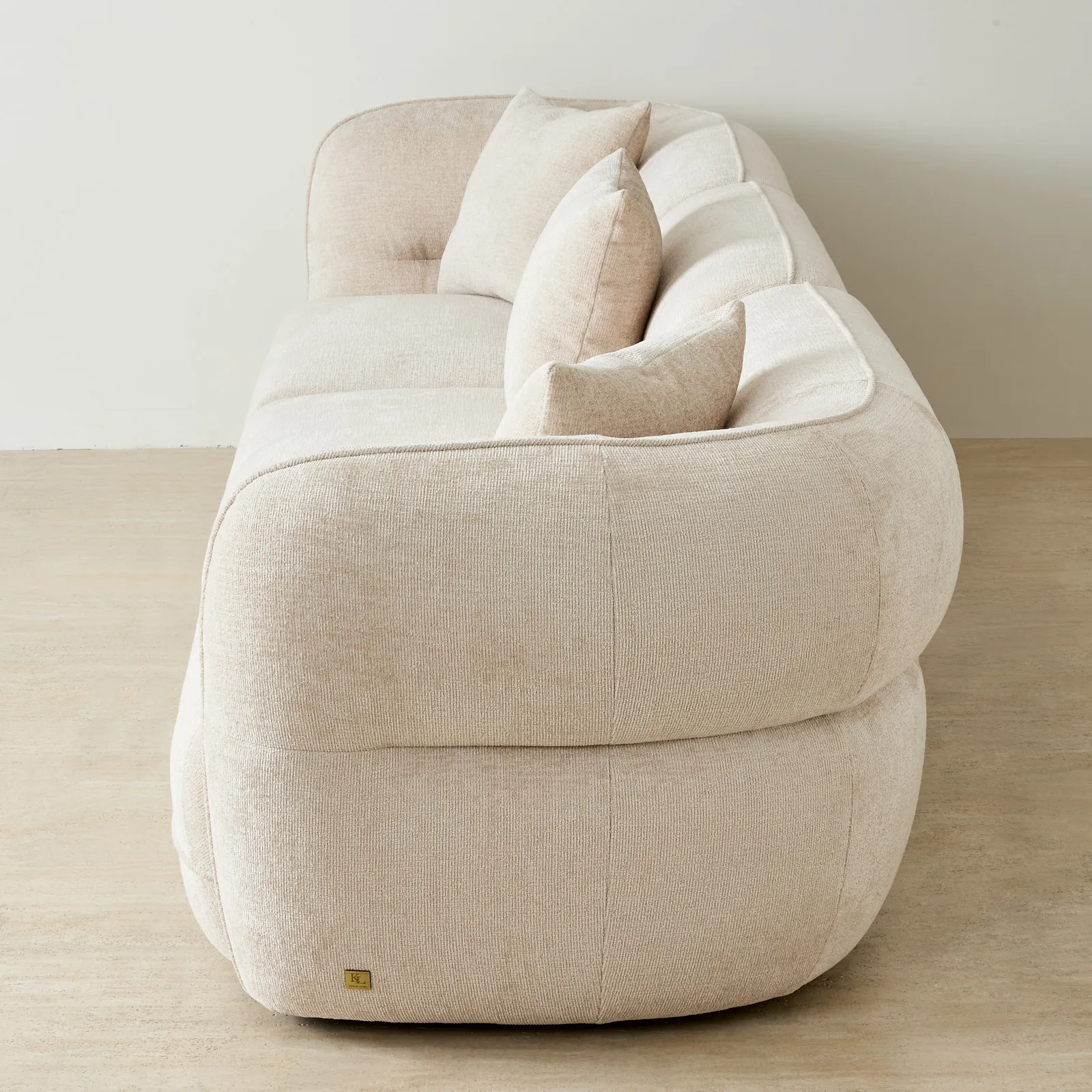 The cream fabric keeps the look clean, stylish and versatile. Matching cushions add comfort while completing the form.