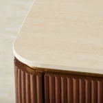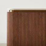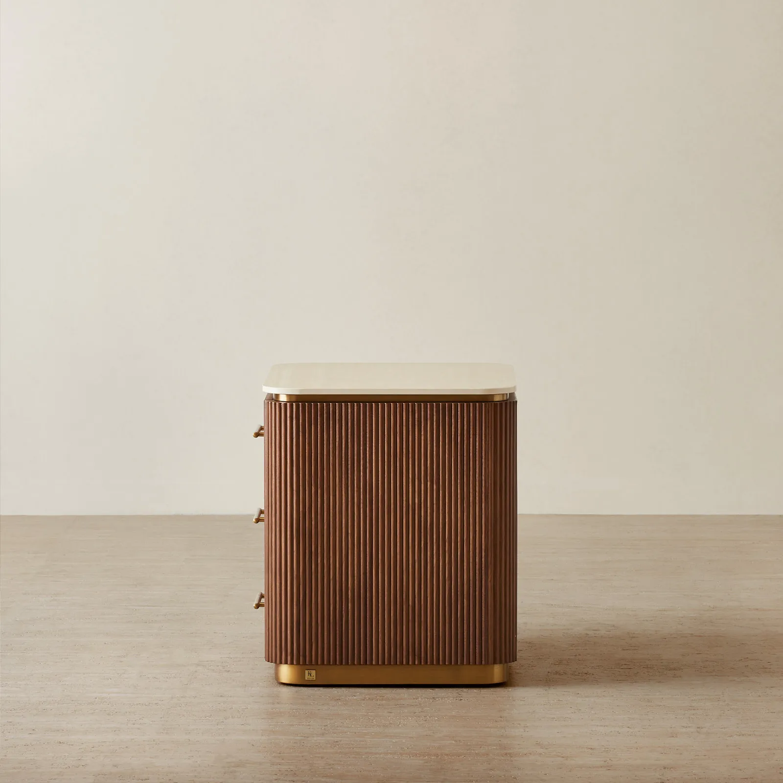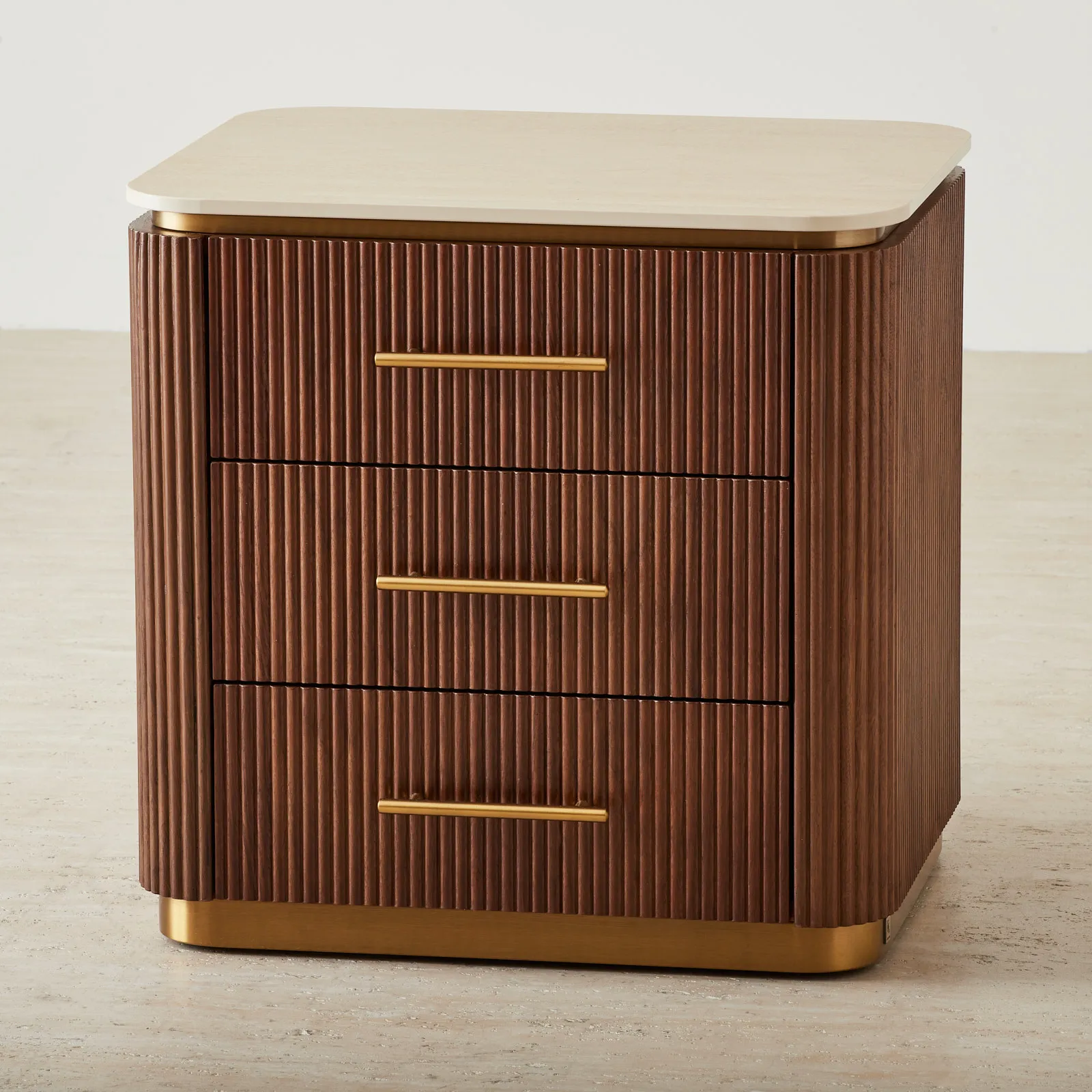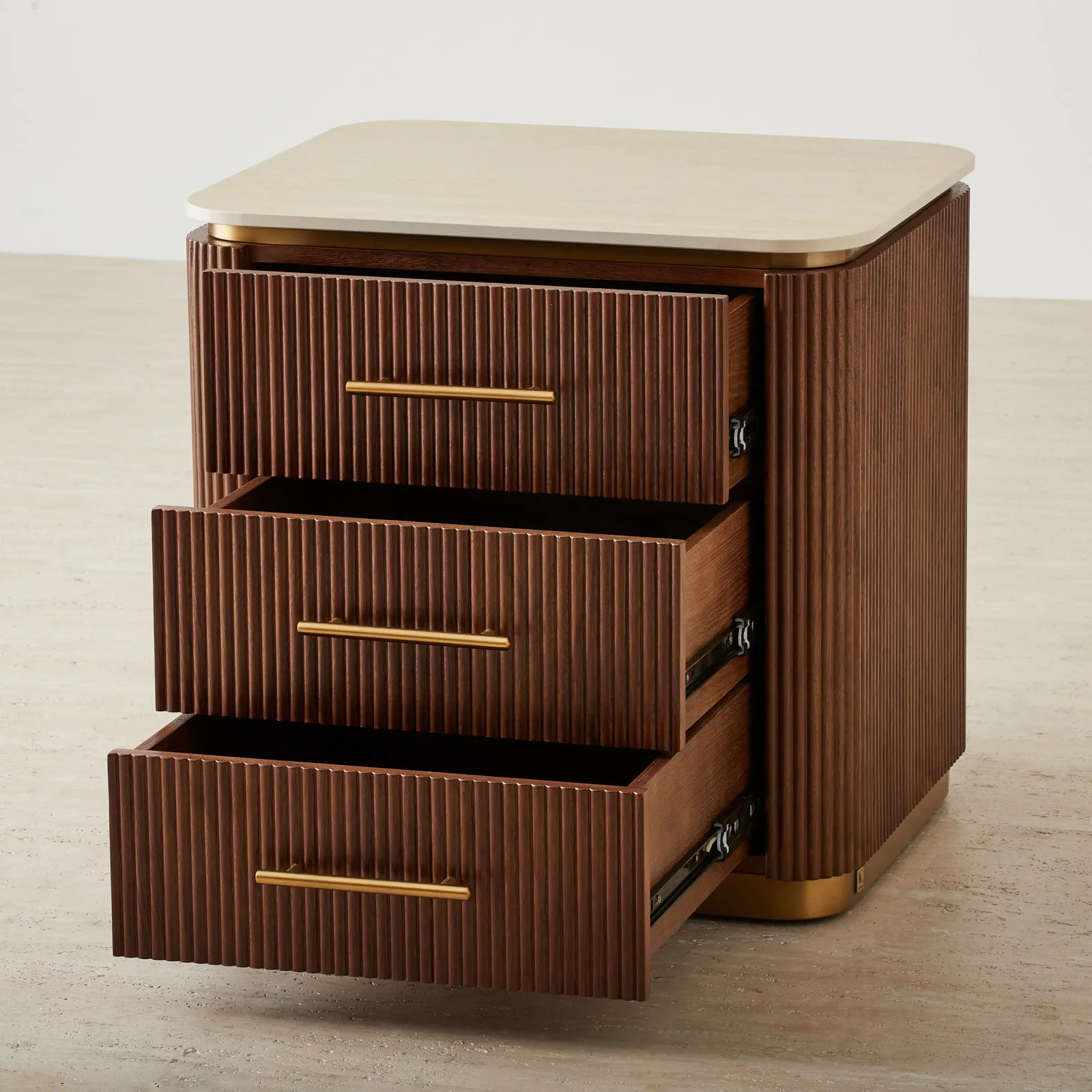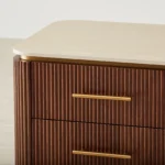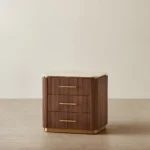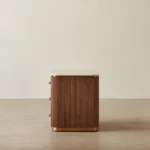 San Pierre Walnut Veneer Bedside Table – Travertine Finish Sintered Stone Top