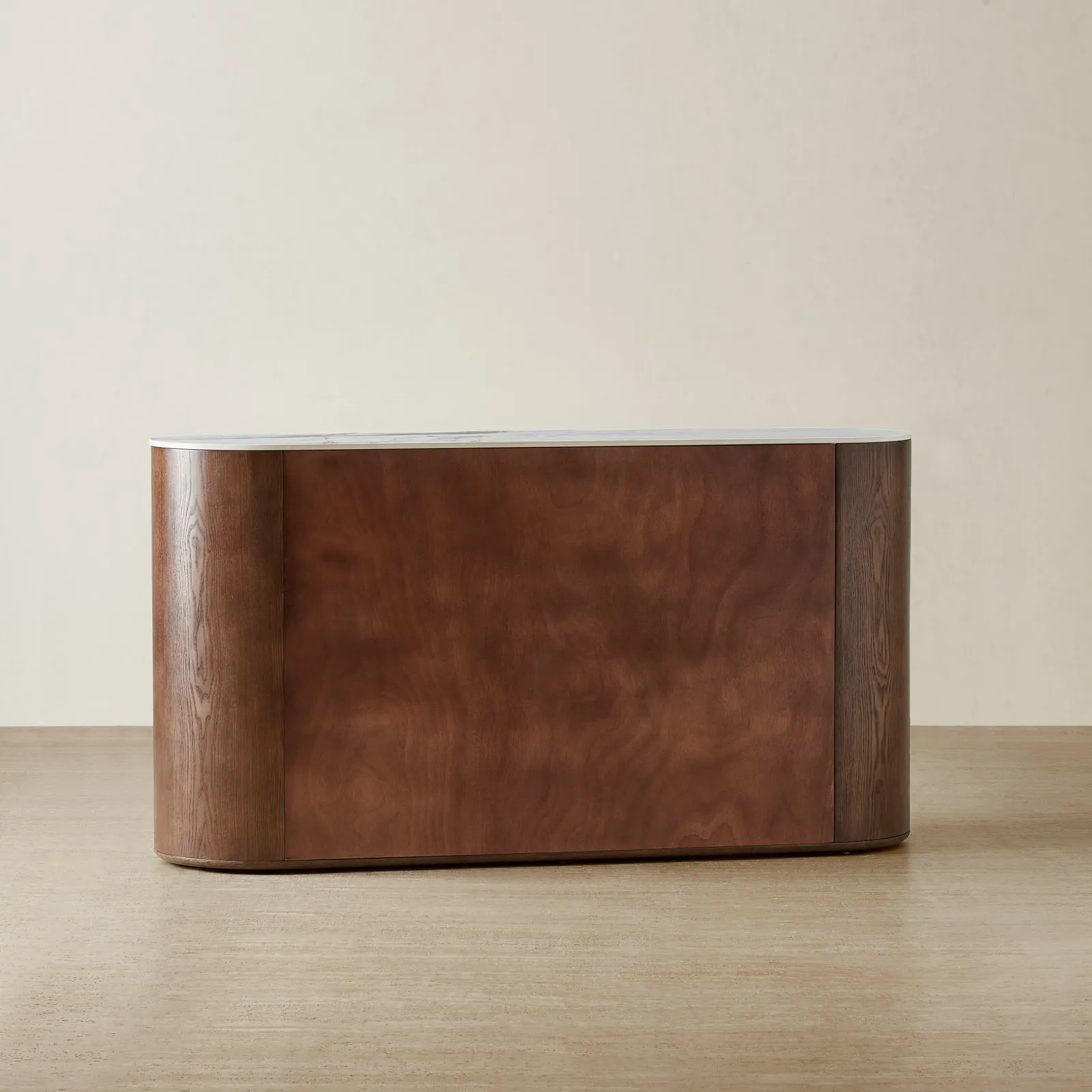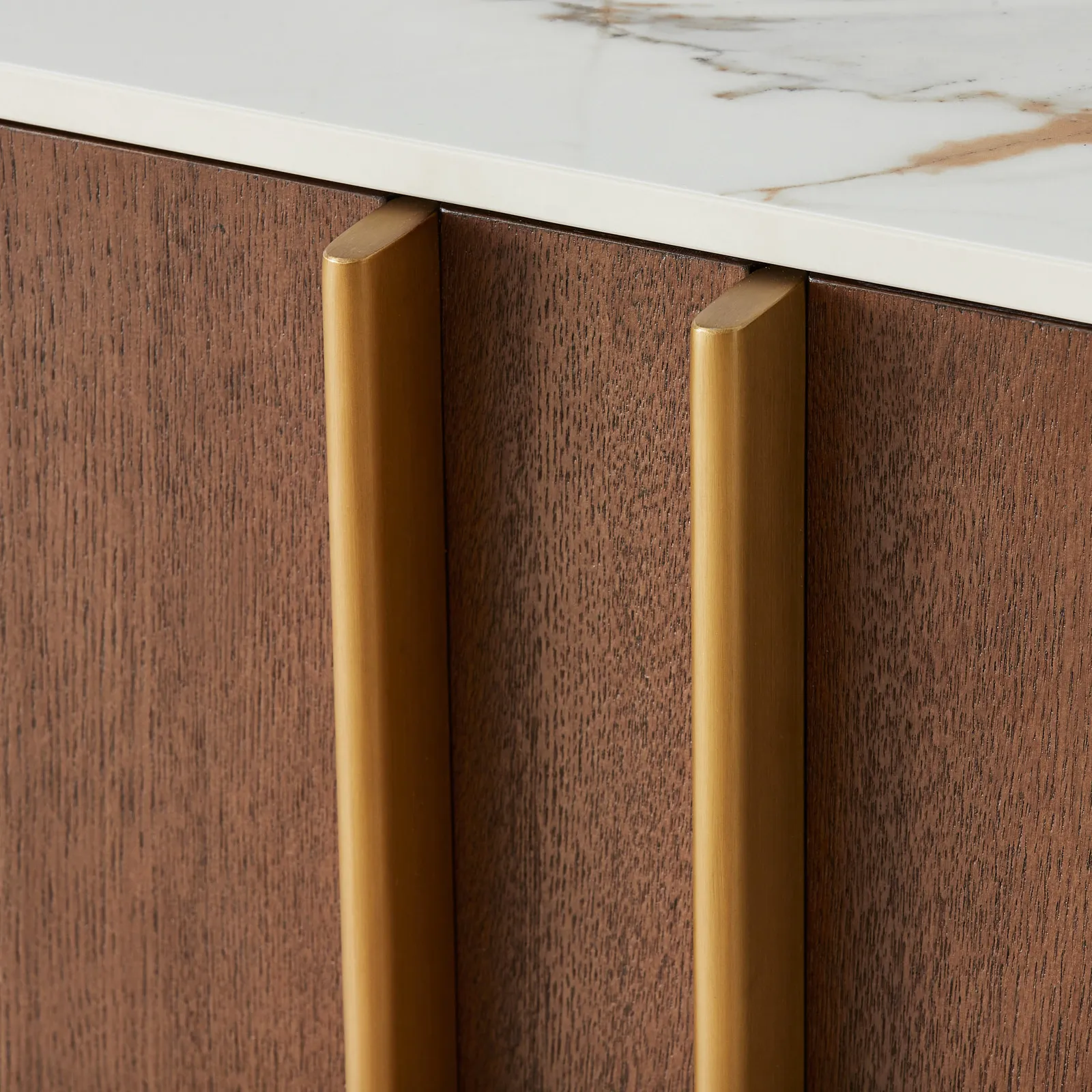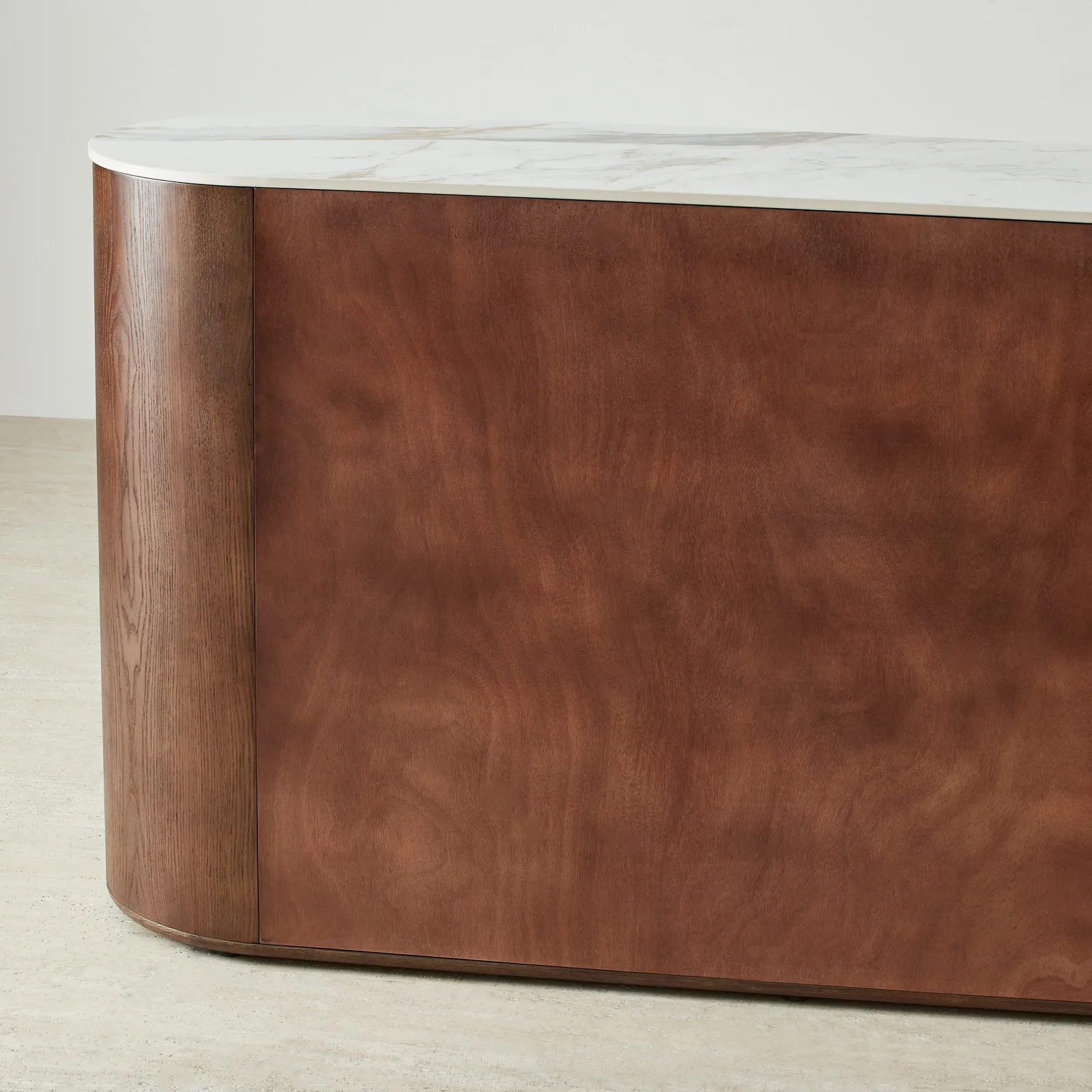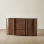 Sir Lionell Gliding White Sintered Stone Dresser – Amber Brown Wooden Leg